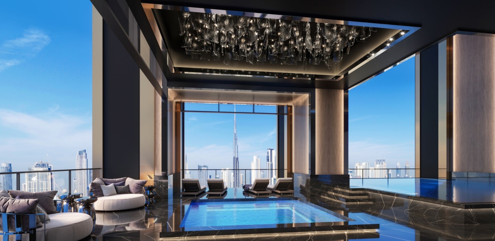 • Premium facilities: multi-level infinity pools, wellness areas, ultra-modern fitness centres, and world-class concierge services.